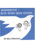 87-88年度 國際 로타리 會長 찰스 C. 켈러께서는 “로타리안이여 - 奉仕로 하나 되여 平和로 이바지 하자”라는 RI 테마를 제창하셨습니다.